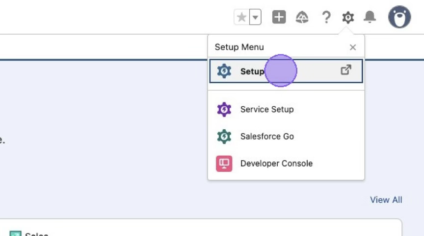 Navigate to Settings (gear icon on the top right) in Salesforce and click Setup.