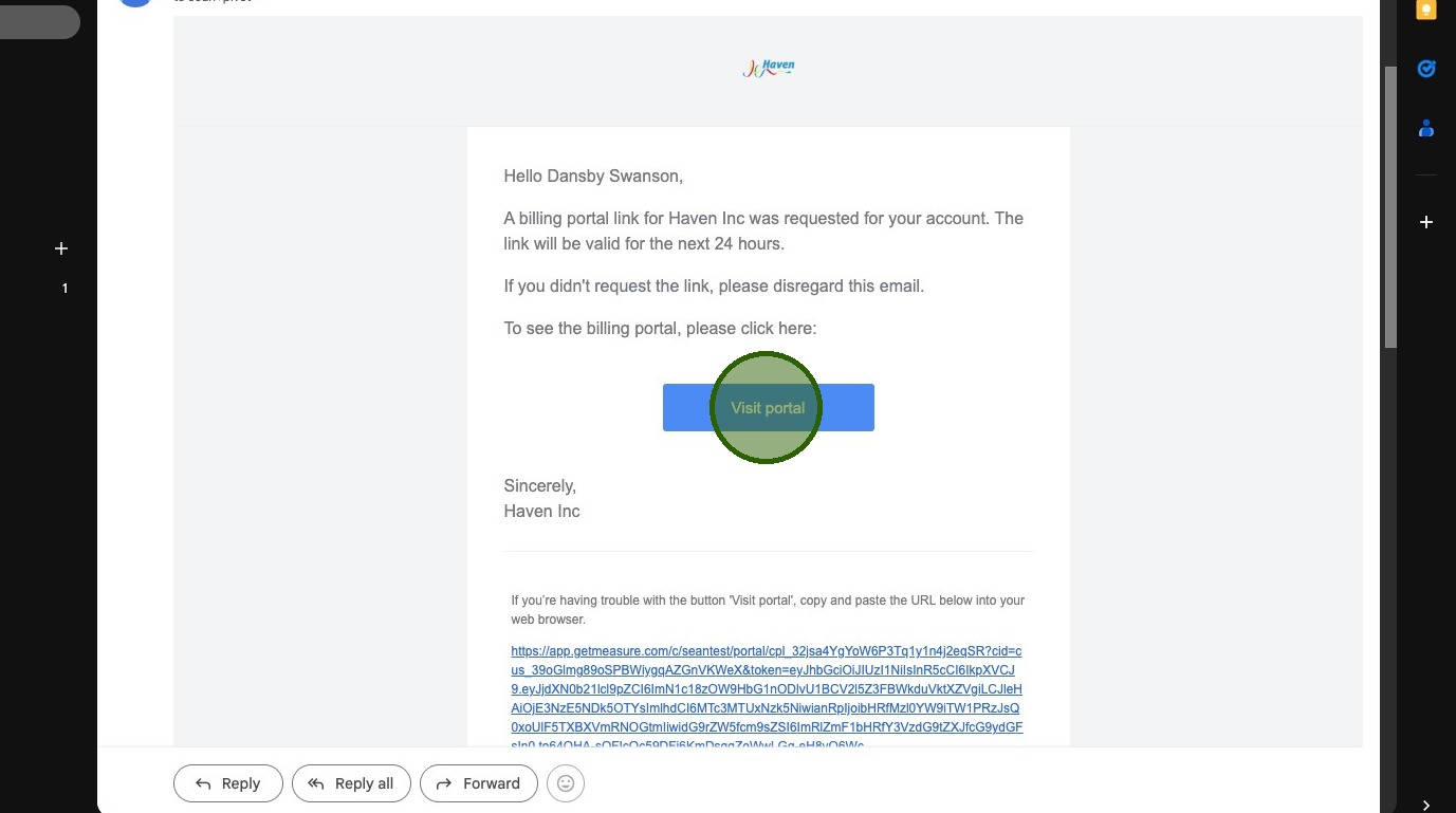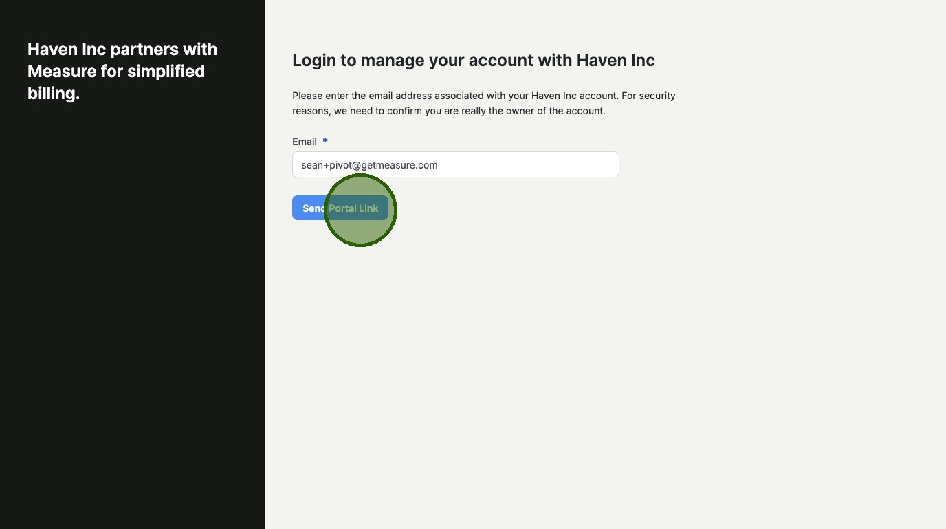To receive a secure link to your customer portal, enter the email address associated with your account and click Send Portal Link. Then, find the invitation email and click the Visit portal button.