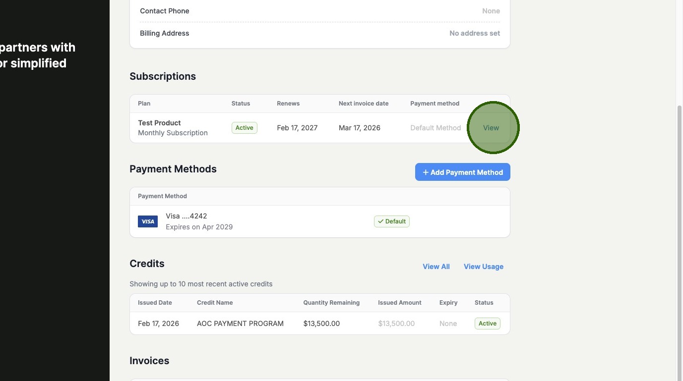 The customer portal provides a centralized place to manage your billing information, view invoices, check subscription details, and see your current credit balance.