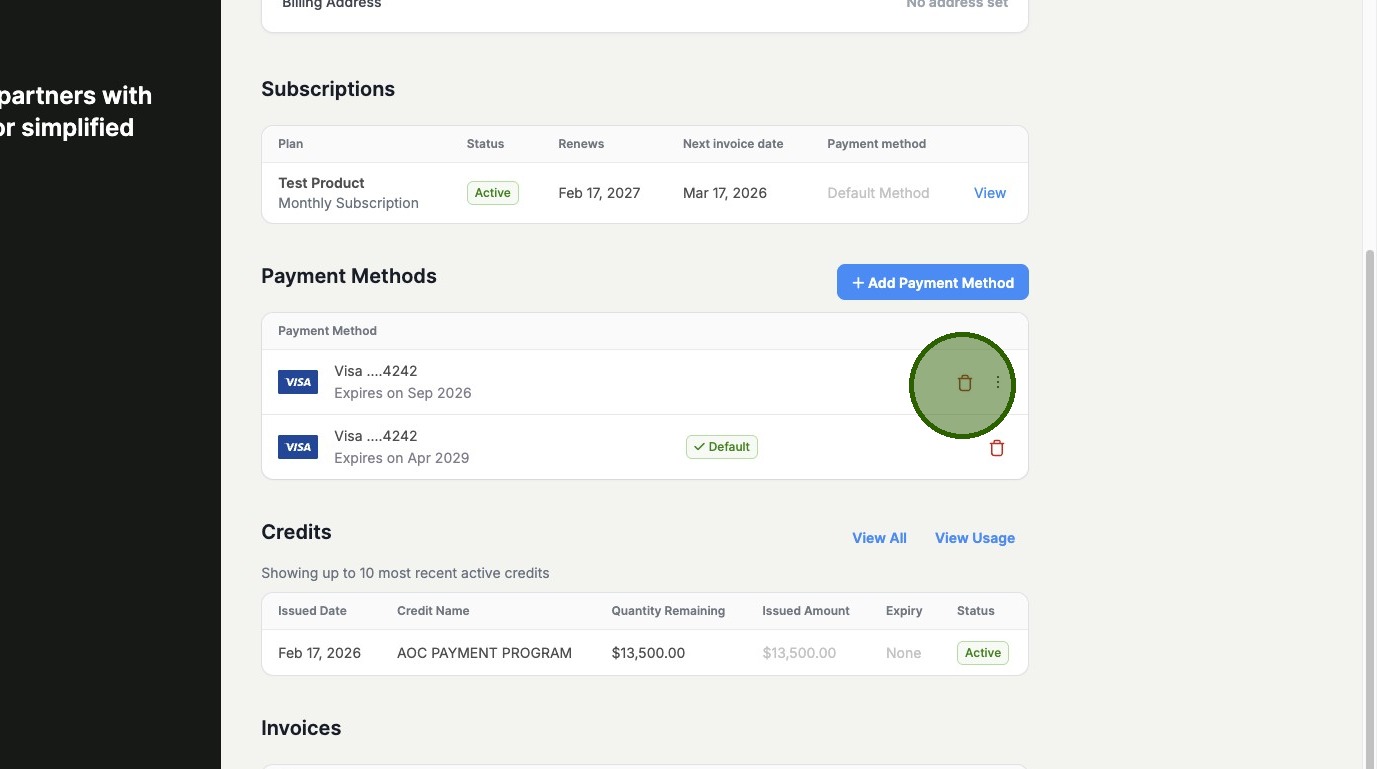 Add a Payment Method: Click Add Payment Method to add a new card.