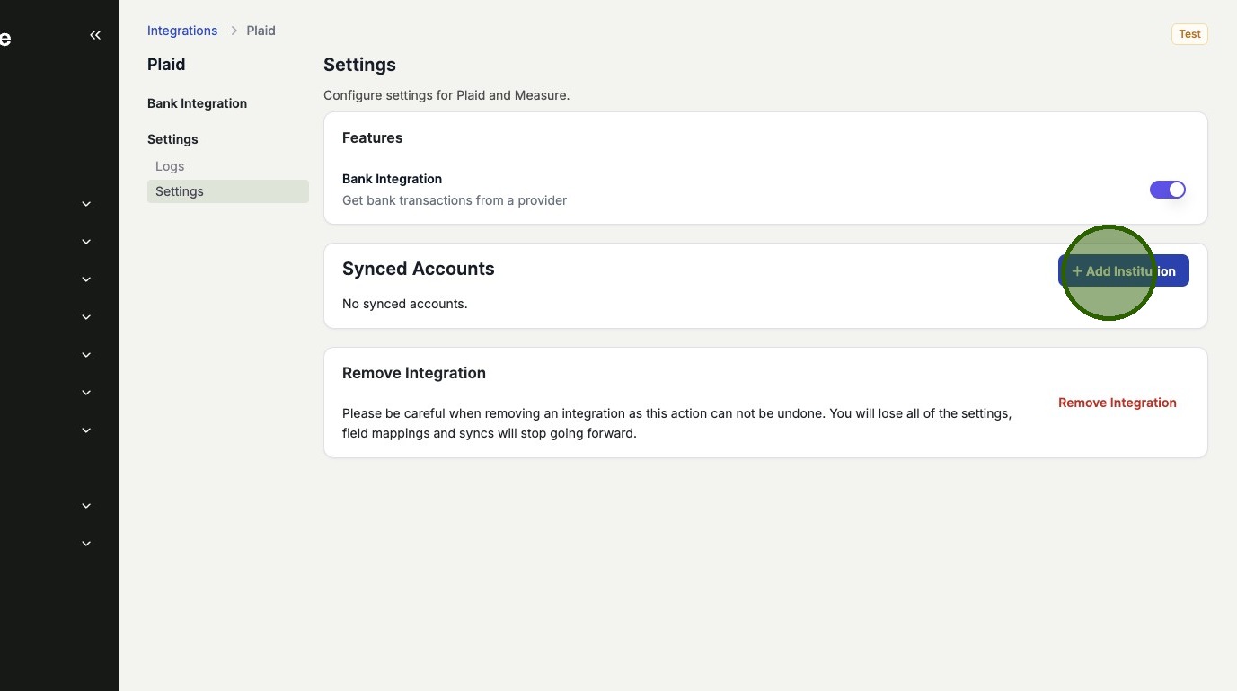 Once installed, click Add Institution to open the Plaid connection window.