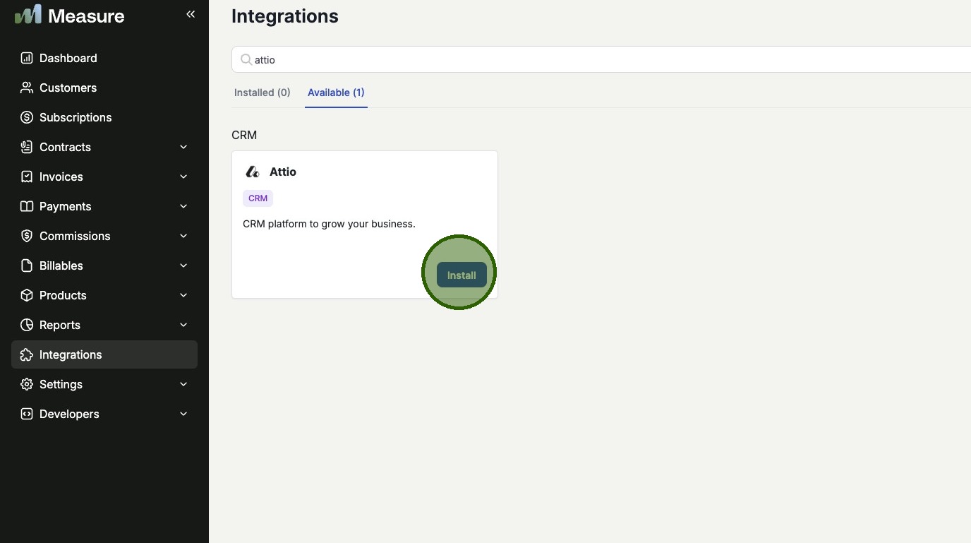 Go to Measure Settings → Attio Integration.