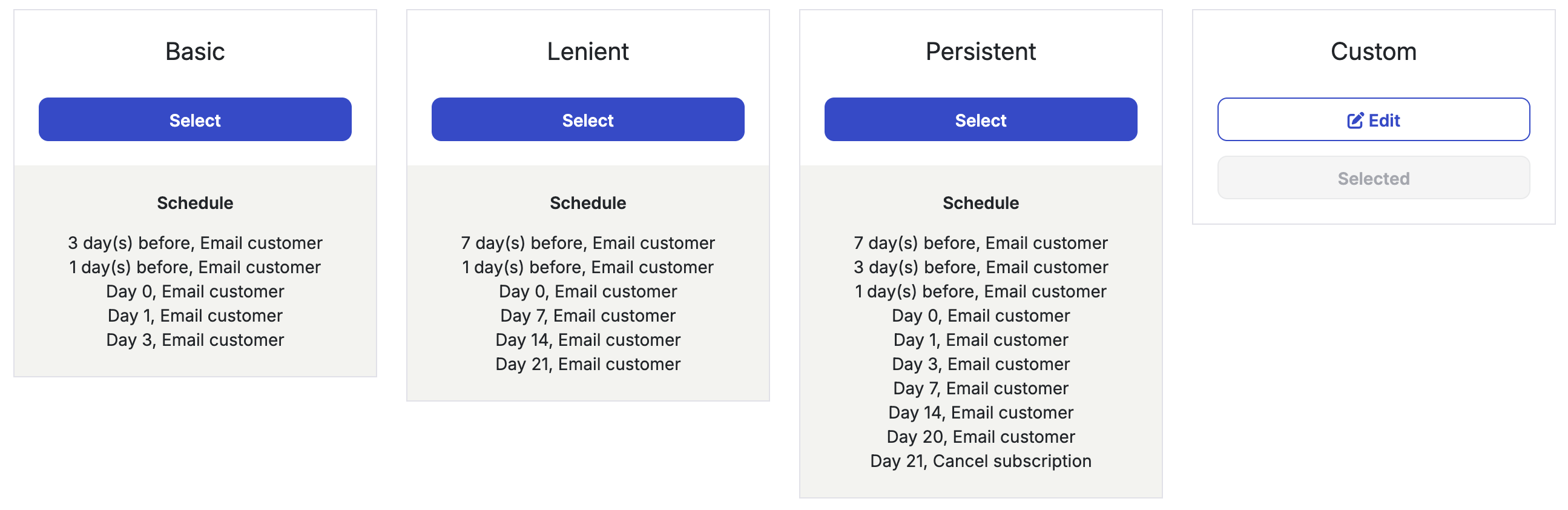 You can also create a custom reminder schedule by clicking Select under Custom.